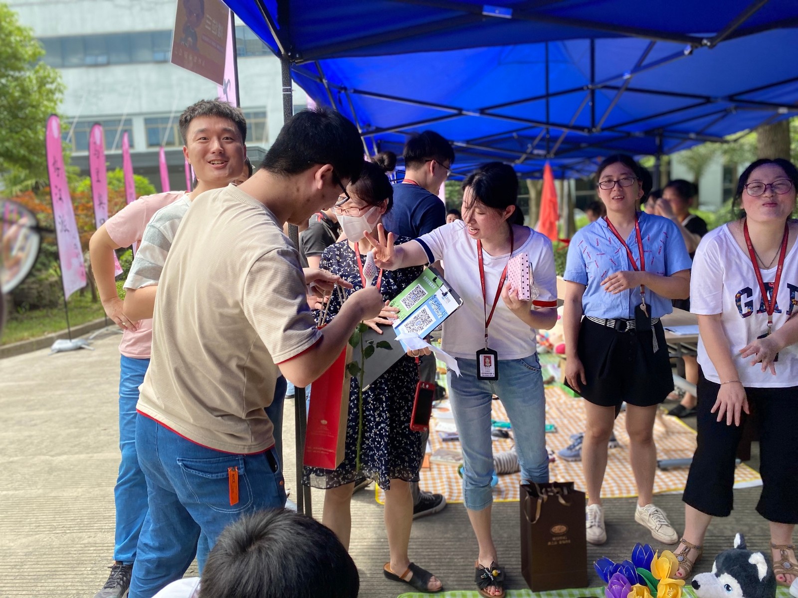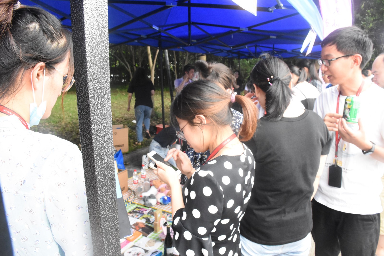 最有创意,当属摊位一生产运营组。他们别出心裁,利用10元一次套圈的方式摆摊卖货,吸引了大部分顾客的注意。摊位二是研发和器件的小伙伴,他们的商品走的是“高端、大气、上档次”的技术路线,售卖单反相机、茶叶等等,以精取胜。摊位三是技术应用、技术质量和设备的小伙伴,商品都亲民、实用,如图书、小风扇等很受欢迎。有道是“上得厅堂下得厨房”,四号摊位是人力和财务,平时风风火火的女汉子们走的是“文艺范儿”路线,售卖月季和玫瑰,吸引了很多男同事抢购。摊位五由IT和销售合作,从蔬菜瓜果到日用品种类丰富,以量取胜。当然现场最火爆的当属是摊位六,他们是玛斯特和制造的宝宝们,澳洲红酒配羊肉串,高冷冰桶混搭火热烧烤,上演了西餐厅与美食街的冰与火之歌,他们以6425元的销售额斩获了摊位冠军。活动中,许多同事都用满意的价格买到了心仪的商品,各个摊位总销售额也远超预期。