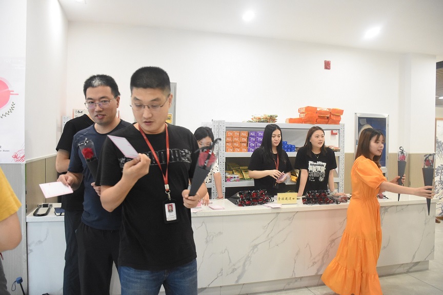 窗外的雨虽大,但食堂大厅的欢声笑语和娇艳的玫瑰为这阴雨天增加了一丝明媚的气息。此次活动不仅为公司增添了七夕节的浪漫节日氛围,同时进一步丰富了公司的企业文化,让大家感受到来自公司的暖心关怀。