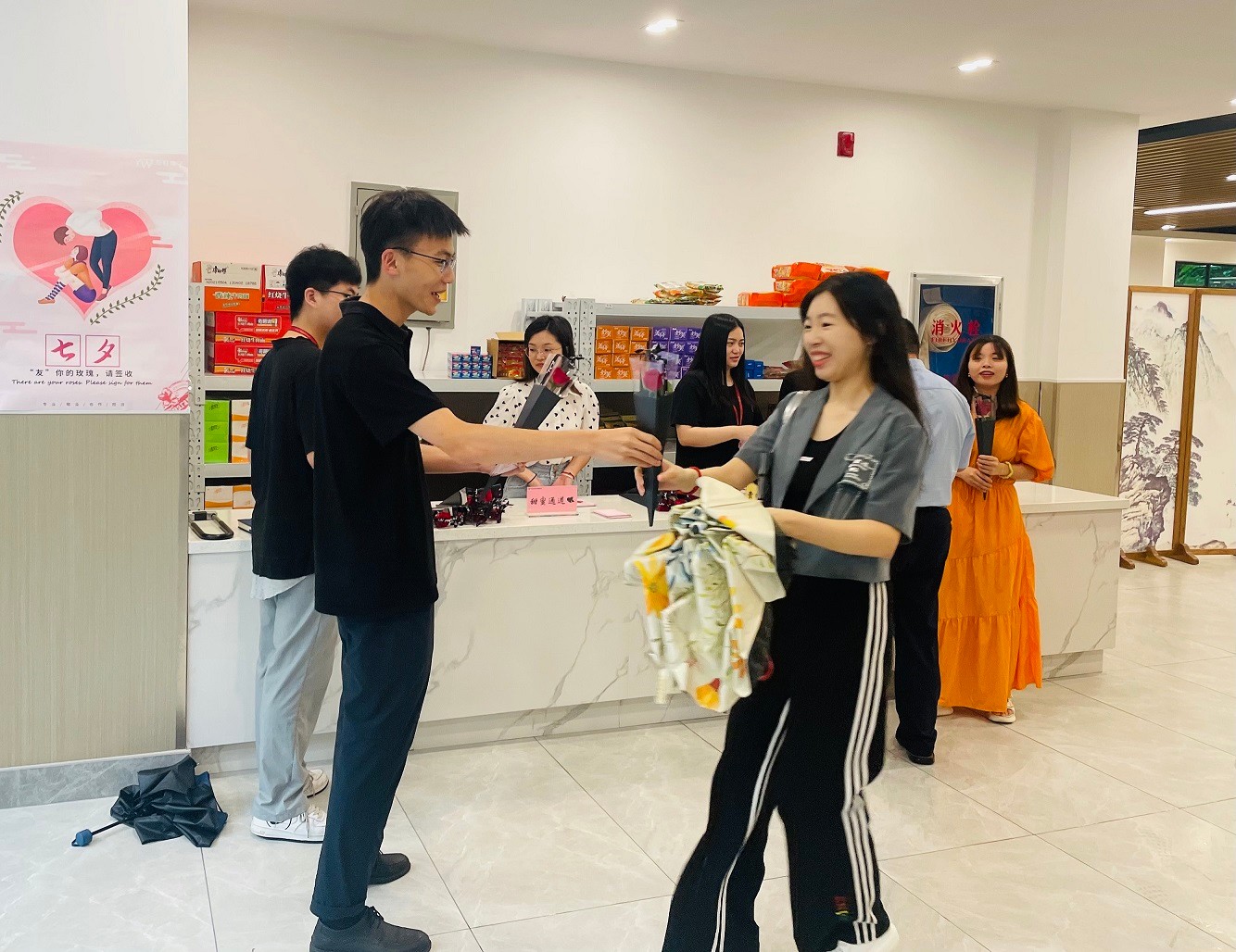 “七夕今宵看碧宵,牵牛织女渡河桥。”时至农历七月初七,便是中国传统佳节——七夕节。今年的七夕恰逢周六,为了让大家提前感受到七夕的浪漫氛围,公司于8月13日早晨在食堂大厅开展了“‘友’你的玫瑰,请签收”活动,为每位同事准备了一支包装好的玫瑰以及定制节日贺卡。节日贺卡分为公司祝福款和手写空白款,满足同事们不同的需要。