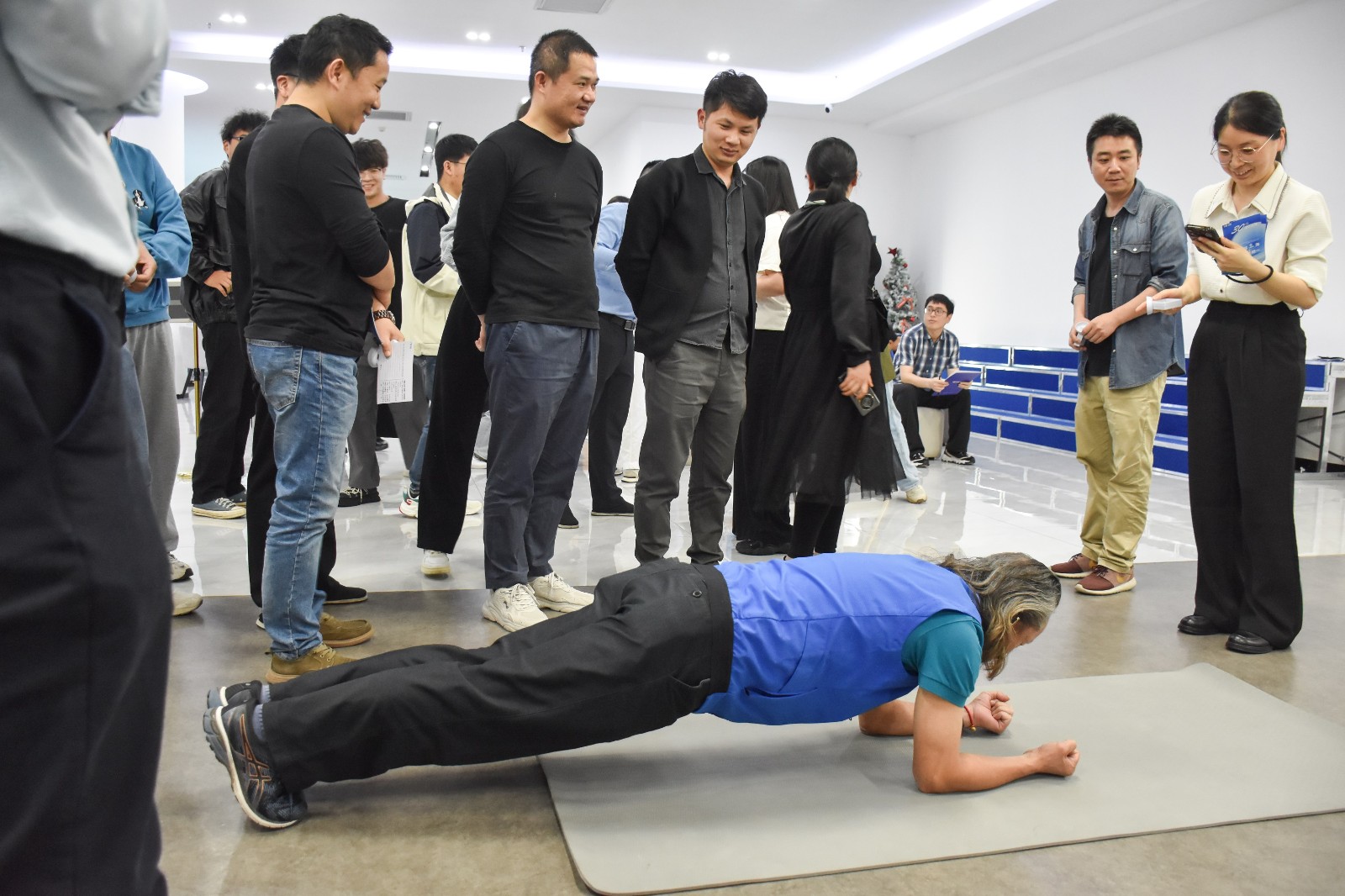 汇聚了200多个友旺人手印的文化墙承载着大家凝心聚力的决心。李总为大家从手印文化墙近200个手印中抽取了三位幸运儿,获得运动礼包一份。