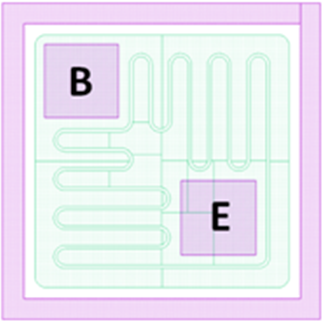 芯片背极为集电极,基极与发射极的键合点位置见右图