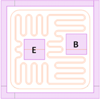 芯片背极为集电极,基极与发射极的键合点位置见右图