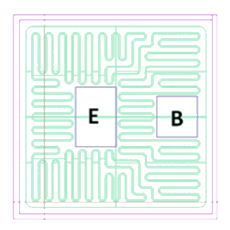 芯片背极为集电极,基极与发射极的键合点位置见右图