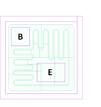 芯片背极为集电极,基极与发射极的键合点位置见右图