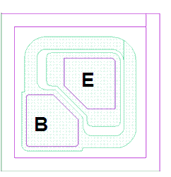 芯片背极为集电极,基极与发射极的键合点位置见右图