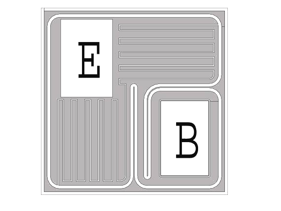 芯片背面为集电极,基极与发射极的键合点位置见右图