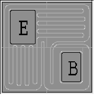 芯片背面为集电极,基极与发射极的键合点位置见右图