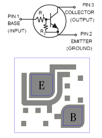 芯片背极为集电极,基极与发射极的键合点位置见右图