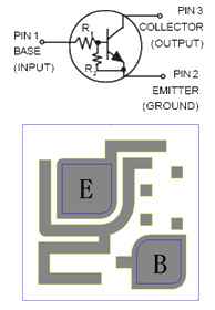 芯片背极为集电极,基极与发射极的键合点位置见右图