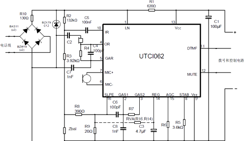 UTC1062是一块双极型线性开云(中国)。它实现全电子电话机所需的全部通话和线路接口功能,在发号和通话之间实现电子转换。该电路能工作在低至1.6V直流线路电压(性能将有所降低),以便更多的话机并联使用。